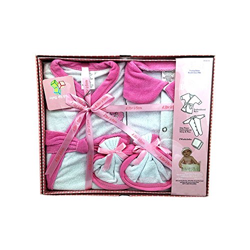-. Feature : 4 PCS BATH SET FOR BOYS OR GIRLS 0/6 MONTHS INCLUDING: / EMBROIDED BATHROBE / EMBROIDED SLEEP AND PLAY BABY PYJAMA / 2 WASHCLOTHS