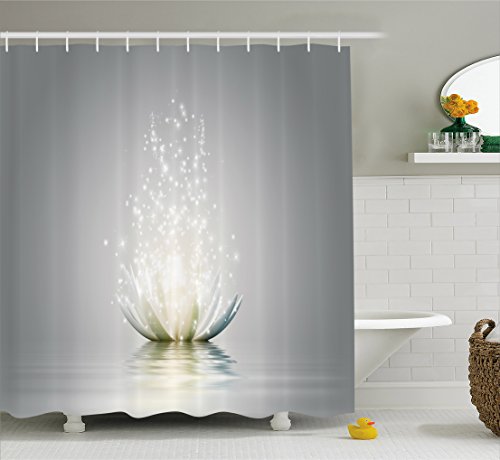 Lotus Shower Curtain by Ambesonne, Lotus Petals Surreal Boho Inspiration Relax Exotic Waterlily Picture, Fabric Bathroom Decor Set with Hooks, 84 Inches Extra Long, Light Grey Silver Coconut