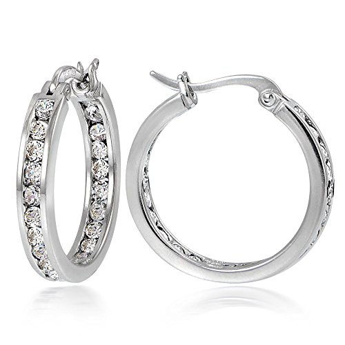 -. Binding : Jewelry -. Brand : Hoops & Loops -. Department : womens -. Feature : HOOPS & LOOPS PROVIDES THE HIGHEST QUALITY IN FINE JEWELRY: All Hoops & Loops jewelry collection pieces are personally curated and closely inspected P.R.Ior to being sent out to customers to ensure perfection and complete satisfaction. / FREE SPECIAL SATIN POUCH WITH EACH PURCHASE: We send all of our high quality jewelry with a free stunning branded soft, satin gift pouch. You can send our earrings easily as a gift to your friends, family or yourself! Our pouches symbolize the great extent we go to when it comes to satisfying our customers! / SPECIAL ANTI-TARNISH COATING: All of our hoop earrings are coated in a special anti-tarnish polish that will preserve its luster and shine. This coating also makes our jewelry very durable so that it can last for many years to come. / 100% SATISFACTION GUARANTEED: We guarantee all our customers 100% satisfaction from our products! All pieces from our jewelry collection come with a lifetime guarantee! -. Label : Hoops & Loops -. Manufacturer : Hoops & Loops -. ProductGroup : Jewelry -. ProductTypeName : FASHIONEARRING -. Publisher : Hoops & Loops -. Studio : Hoops & Loops -. Title : Hoops & Loops Sterling Silver Cubic Zirconia Inside Out Channel-Set Small Round Hoop Earrings