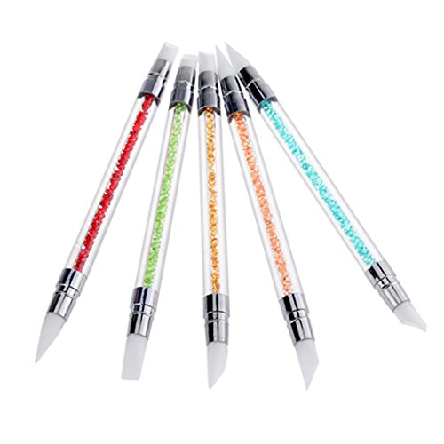 5Pcs nail art carving brushes, delicate design, silicone head, clear acrylic tube, decorated crystal rhinestone. Soft head, can be used to carve flower and make patterns on your nails. Comfortable and easy to handle. Great for fine nail art work, suitable for professional use and home use.