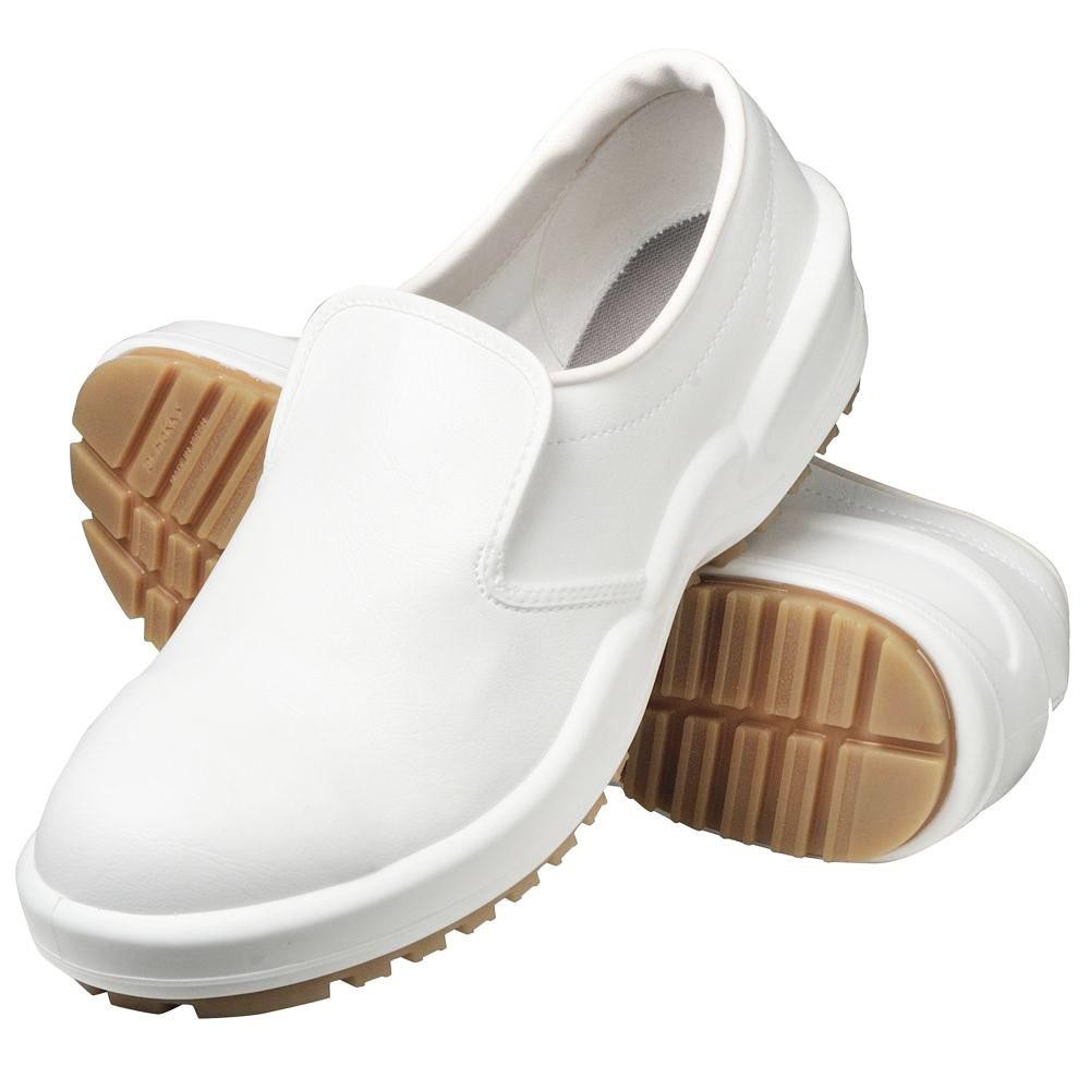 耐滑性バツグン!!油にも強いスニーカータイプの厨房靴です。クッション性にも優れている、疲れにくいタイプ。つま先部分を保護する先芯入りです。抗菌加工をした人工皮革素材を使用しています。