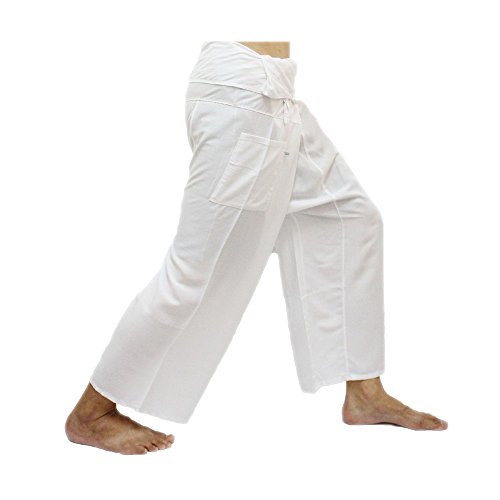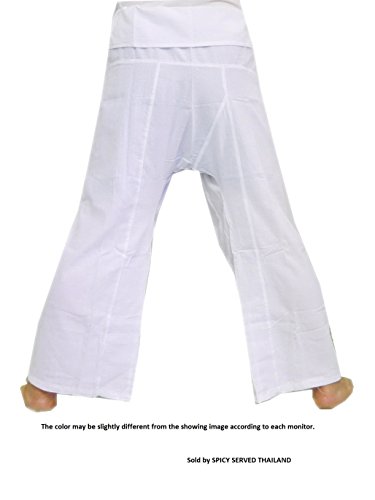(Striped - White).!!. Thai Fisherman Pants Cotton 100% Traditional Tailoring Style Yoga Pants , Relax Pants , One Size