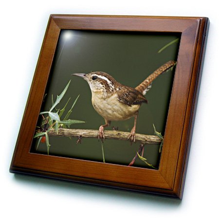 3dRose ft_84231_1 Carolina Wren bird on Agarita, Hill Country Texas - NA02 RNU0063 - Rolf Nussbaumer - Framed Tile, 8 by 8-Inch