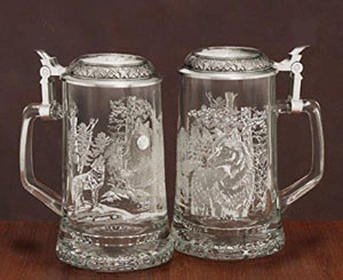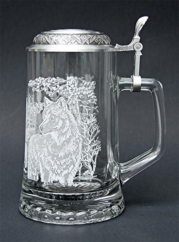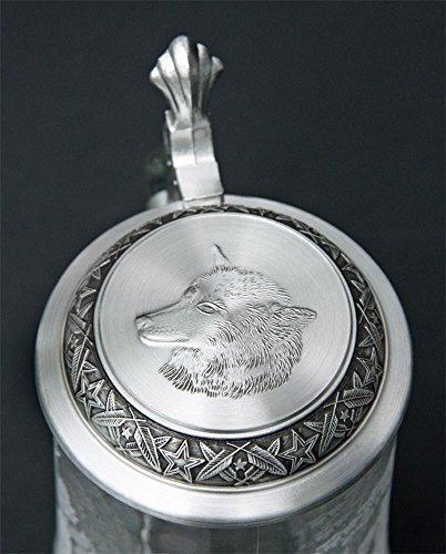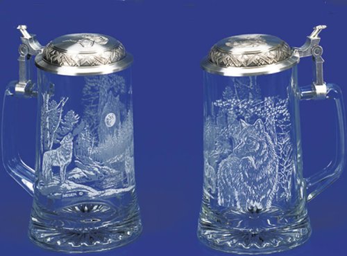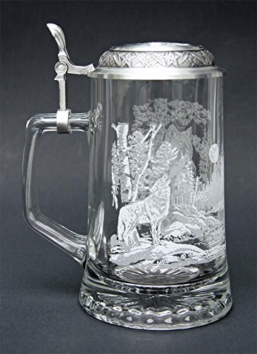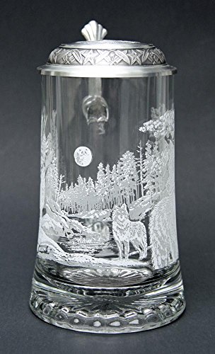 Studio : Cornell Publisher : Cornell Binding : Kitchen Product Description This scene was drawn by James A. Meger and depicts a close-up view of an alpha wolf on the right side and a howling wolf with moon in background on the left side of the stein. Etched design high fired print. The embossed pewter lid is adorned with a wolf motif completes the stein. This beautiful wolf stein is a wonderful addition to your collection. 0
