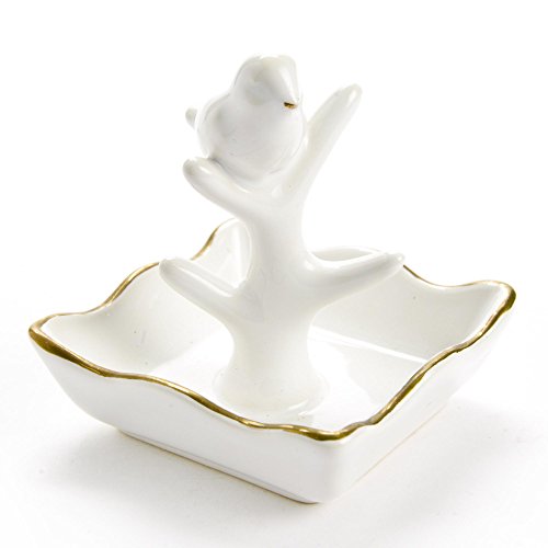 Bird in Tree White & Gold-colored Ceramic Ring Holder