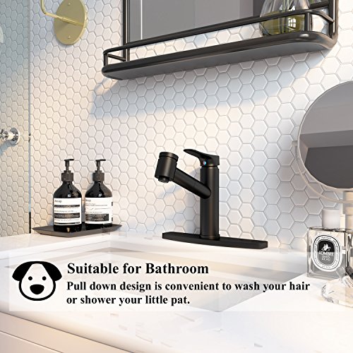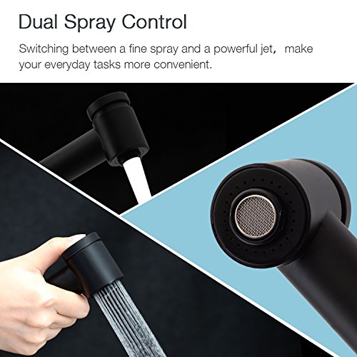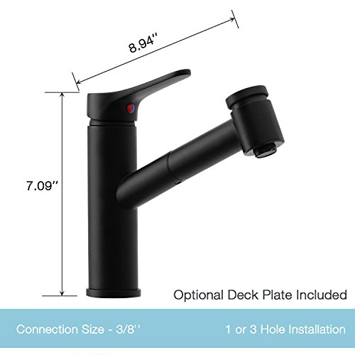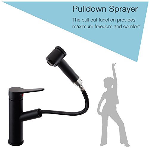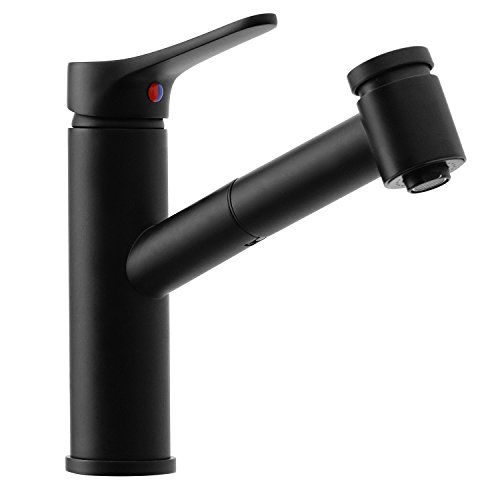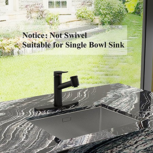 Wasserrhythm Kitchen Pull Down Single Handle Sink Mixer Faucet Matte Black with Escutcheon