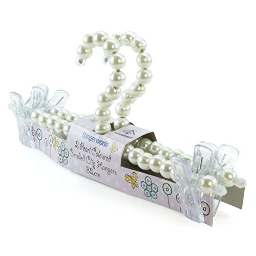 -. Binding : Kitchen -. Brand : HANGERWORLD -. Color : Mixed -. EAN : 5060225559078 -. Feature : Pack of 2 Premium quality strong metal hangers covered in luxurious faux pearl beads with plastic clips. / Perfect for hanging pants & skirts but can be used for many other garment also. / Great decorative hangers, but also practical. Dress & Skirt straps slot between any of the beads allowing clothing of all sizes to be held firmly in place. No more garments slipping off hangers! / Exquisite design and elegant appearance. Plastic beads will never discolour your precious garments. / Ideal as a gift; to give your closet a fresh, luxurious look, or for an elegant boutique retail display. Size: 32cm (12.5 Inches). -. IsAutographed : 0 -. Label : HANGERWORLD -. Manufacturer : HANGERWORLD -. Model : MH-32-CLIP-BEAD-PEARL -. MPN : MH-32-CLIP-BEAD-PEARL_2 -. PackageQuantity : 2 -. PartNumber : MH-32-CLIP-BEAD-PEARL_2 -. ProductGroup : Home -. ProductTypeName : HOME -. Publisher : HANGERWORLD -. Size : 12.5 Inches -. Studio : HANGERWORLD -. Title : Hangerworld Pack of 2 Premium Metal Coat Hangers Covered in Pearl Beads with Plastic Clips - 12.5 Inches