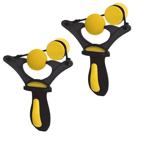 -. Feature : Two mini-slingshots with major performance / Shoots over 40 feet / Ultra-soft foam ammo / Compact size and super stylish / Each set includes 1 pocket shot and 3 balls