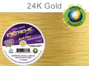 Soft Flex Extreme Wire is a beading wire, free of heavy metals, for designers who want to add sparkle and shine to a piece that exposes the wire. The Extreme Wire will not tarnish and is great for free floating necklaces and pendants. The wire is constructed of 1x19 micro woven metal alloy wires, and is supple enough to be knotted. Soft Flex recommends Extreme Wire for designers that want to be 'green' and desire a high quality wire for high end jewelry. Soft Flex Extreme Wire is the world's first eco-friendly beading wire. Recycle us! All stainless steel used in the construction of Soft Flex products is 100% recyclable. Our nylon coating is derived from renewable resources and can be recycled. Our spools and clips can also be recycled - just tear off the label and put the empty spool into your recycling bin or mail them to: Soft Flex Company P.O. Box 80 Sonoma, CA 95476.Feature