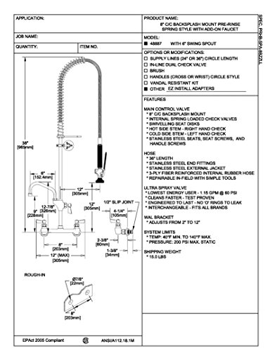 Fisher 48887 8" Centers Backsplash Mount Pre-Rinse Spring Style with Add-on Faucet with 6" Swing Spout