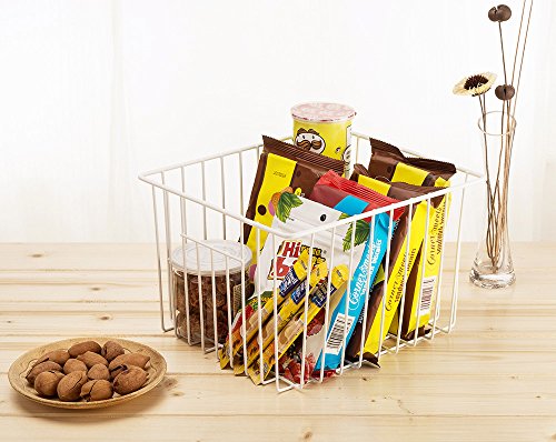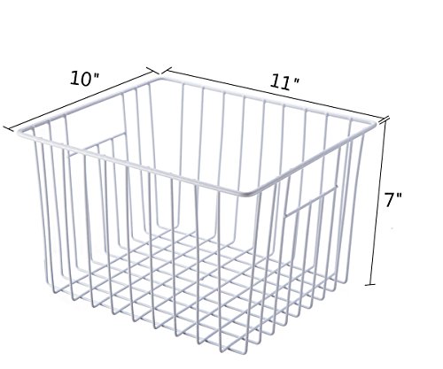 SANNO Household Wire Storage Basket Bins Organizer with Handles for Kitchen, Pantry, Freezer, Cabinet - Pearl White