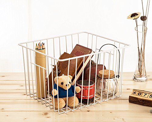 - FEATURES :Wire storage basket with built-in handles for portability.Handles make these bins easy to remove from shelves.Open design lets you easily view everything in the basket.