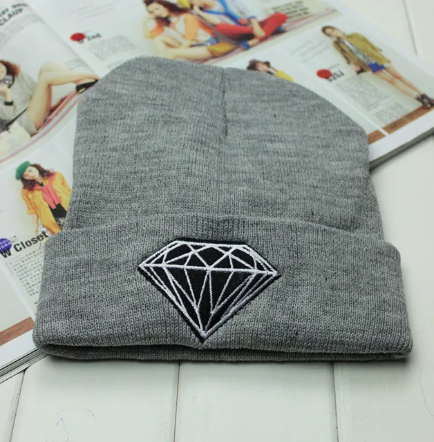 | [해외]새로운 다이아몬드 비니 두꺼운 모직 모자 겨울 따뜻한 니트 남성 쿨 Skullies 펑크 남여 비니 |