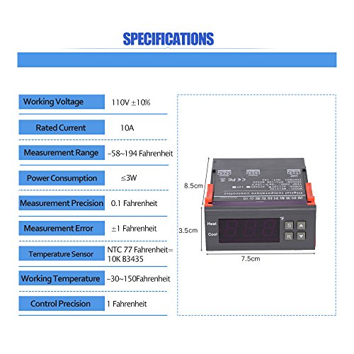 Docooler® Digital Temperature Controller Thermocouple with Sensor (-58~194°F) 10A 110V