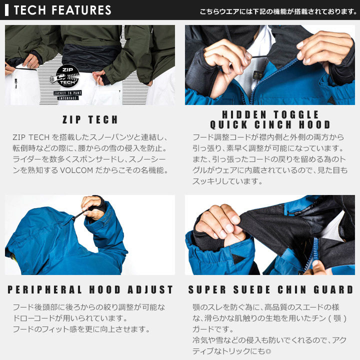 また、全ての縫い目にシームテープ加工を施し高い防水性と防風性を保持しながら、ライナーは通気性の高いV-SCIENCEライニングシステム仕様で汗冷えを軽減したスノーアクティビティーで活躍する機能面もオススメポイントです。