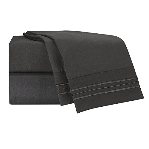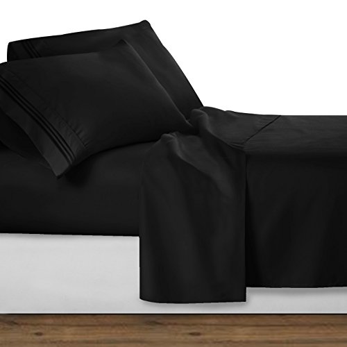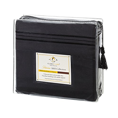 Clara Clark Premier 1800 Collection 4pc Bed Sheet Set - Full (Double) Size, Black