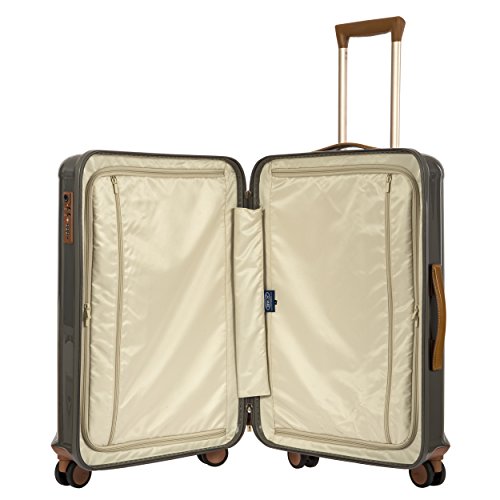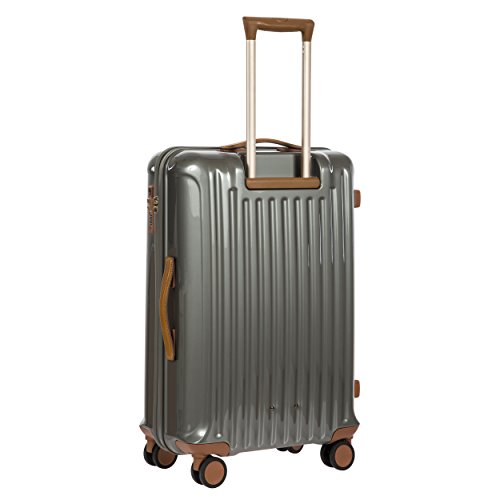 Studio : Bric's Luggage Child code Publisher : Bric's Luggage Child code Binding : Apparel Product Description A lightweight, handcrafted suitcase offering a spacious interior, four spinner wheels, and polycarbonate shell. Interior sized to hold your essentials for a medium length trip while being spacious enough for those extra items taken home after travels. Super impact-resistant polycarbonate shell withstands rigorous baggage hanging with ease. Full-grain Tuscan leather details on handle and logo give this modern luggage a classic look. Japanese dual Hinomoto wheels glide effortlessly over hard and soft surfaces. Water-resistant sealing zipper keeps your belongings dry and protects against moisture and transfer of smell. Reinforced rib on shell bottom for increased stability. Protective luggage cover available for purchase. Ideal for 4-7 day trips. Weight 9.2 lbs. 0