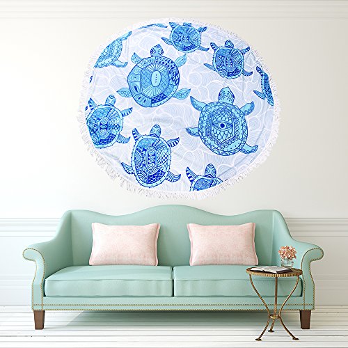 Beach Towel, Decorative Wall Hanging, Beach Throw Tapestry Round Yoga Mat 60 Inch (Turtle)