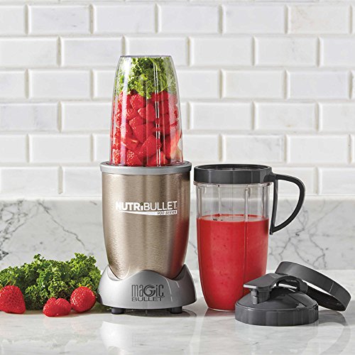 NUTRIBULLET PRO 9-PIECE BLENDER/MIXER SYSTEM NutriBullet PRO features a powerful 900-watt motor with unique extraction blades and exclusive cyclonic action to break down, pulverize, and emulsify whole fruits and vegetables better than any standard blender or juicer, creating silky-smooth nutrient-extracted beverages that nourish your system from the inside out. Great for those who are active in their lives and proactive about their health, the NutriBullet PRO makes ultra-nutritious NutriBlast smoothies to enjoy at home or on the go. Its compact size and simple assembly fit onto any countertop, while its cups, blades, and accessories rinse clean under the tap or in the dishwasher. NutriBullet PRO is easy to use and easy to clean, and even comes with membership to a recipe site that features over 700 smoothie recipes and direct access to Registered Dietitians! The 9-Piece Set includes: - High-toque Power Base - 1 Emulsifying Extractor Blade - 1 32oz Colossal Cup - 1 24oz Tall Cup - 1 Flip-Top Lid - 1 Handled Lip Ring - 1 Comfort Lip Ring - 1 Life Changing Recipes Book and User Manual - 1 Pocket NutritionistFeature