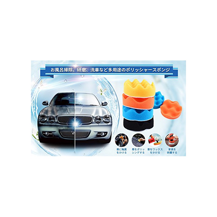 원본상품명:ポリッシャ スポンジ セット 交換 バフ パッド 洗車やワックス 垢取り 傷磨き 塗 作業用 5サイズ選べる 80mm 100mm 125mm 150mm 180mm 波型スポンジ 4個入