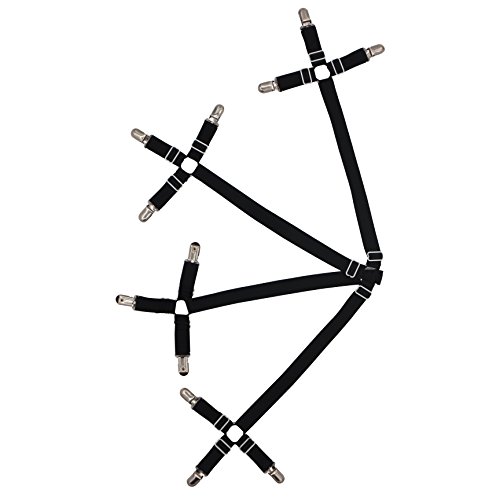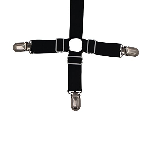Addas Bed Sheet Straps Suspenders with Metal Clip,Crisscross Adjustable for All Size Bed (Black)