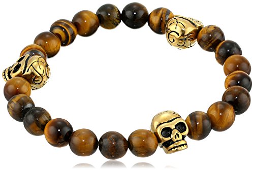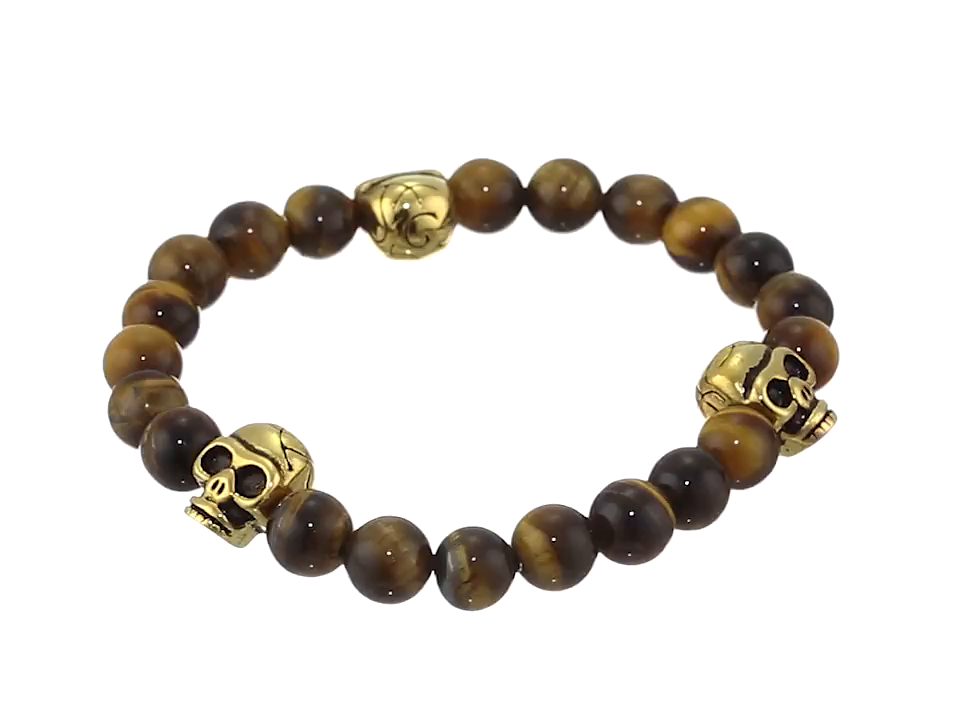 Men's Tigers Eye and Skull Bead Stretch Bracelet