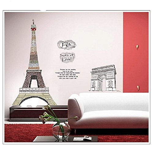 Amaonm® Giant Eiffel Tower Peel and Stick Wall Decal World Famous Building Triumphal Arch Wall Stickers Murals for Boys and Girls Bedroom Living Room TV Background Decorations