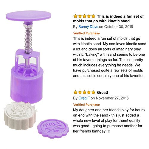 COMPATIBILITY: Use with all molding play sand brands including Kinetic Sand, Sands Alive, Brookstone sand, Waba sand, Moon sand and Magic sand.