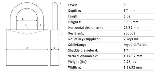ABUS 72/40 Aluminum Safety Padlock Blue Keyed Different - Long Shackle (1-1/2") - 6 Pack