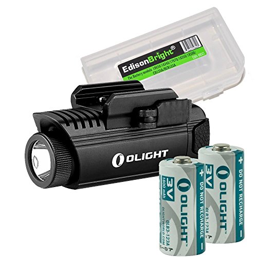 Bundle: Olight PL1 II Valkyrie 450 lumen LED weapon mounted light with 2 X Olight CR123 lithium batteries and EdisonBright battery carry case