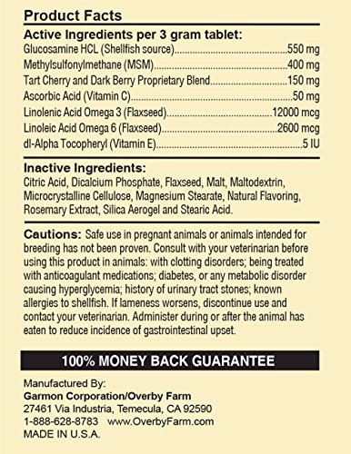 -. Title : Overby Farm Hip Flex Joint Level 2 Moderate Care with Tart Cherries for Dogs, Cvhewable Tablets, Made in USA