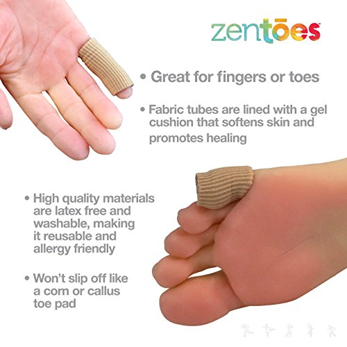 Studio : ZenToes Publisher : ZenToes Binding : Health and Beauty Product Description Got a painful toe corn? An unsightly toe callus? Problems with dry skin on your toes or brittle nails? Are crooked or overlapped toes making all of your shoes a nightmare to wear? No matter what type of foot care problems you're facing, the solution is the same--just slip on ZenToes Toe Tubes to promote healthier, happier toes! Whether you have a corn between toes or chronic foot pain due to toe friction, ZenToes Toe Tubes are the perfect solution. Our unique designed toe protectors are constructed out of a flexible fabric material that you can cut to the perfect length for any toe. Unlike a callus toe pad or toe pads for corns and calluses, our toe sleeve slips on over the entire toe. This way, you never have to worry about it moving out of place or coming loose inside of your shoe! Once in place, ZenToes Toe Tubes serve as a protective barrier to reduce rubbing from footwear and friction between the toes. As an added benefit, each toe sleeve features a vitamin-enriched gel lining that softens the skin, moisturizes the nails and toes and promotes skin healing. With regular use, the gel toe protector can greatly improve the texture, appearance and health of your toe! When you choose ZenToes Toe Tubes, you'll get more for your money! Our package includes five gel toe sleeves, each of which is about 6 inches long to give you 29" inches of tubing in all. That's more than you'll get when you purchase other sleeve toe protectors, but our price is still unbeatable! Discover the simple way to protect your toes and deal with the development of toe corn and toe callus growths! Order the best alternatives to toe pads for corns and calluses on Amazon! Buy the ZenToes Toe Tubes pack now! 0