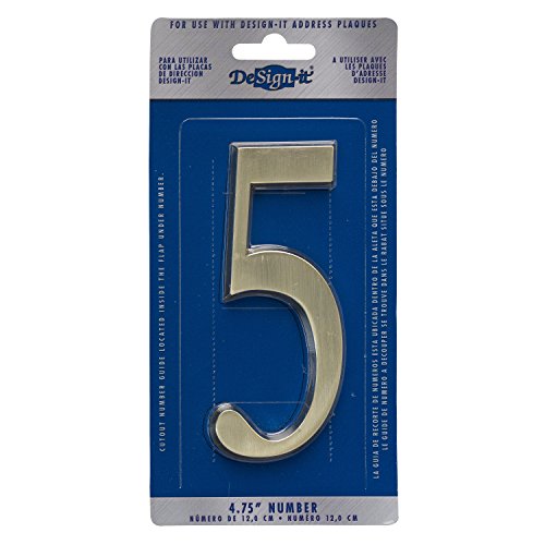 Whitehall Products DeSign-it Standard Plaque, 4.75” Number 5 Satin Brass