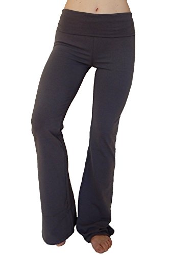 N 365 Women's Cotton Spandex Yoga Pants With Flare Leg and Fold Down Waist-Charcoal Gray