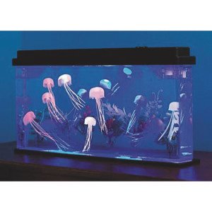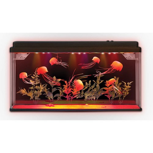 Beautiful jellyfish, lyrically swimming in the gentle currents of a salt water aquarium - you have to look closely to see that its all an illusion created in the magical Deluxe Jellyfish Aquarium! 7 artificial jellyfish, made from a special polymer, move as if they were alive on the micro currents created by the aquarium. 12 LED lights gently change color with 5 lighting effects, adding to the soothing ambiance. It's just like having a saltwater aquarium with none of the hassle of cleaning and maintenance. Automatically shuts off after 4 hours.Feature