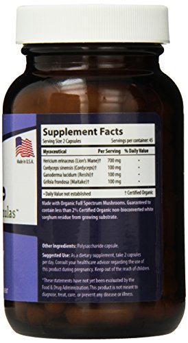 Made with Organic Full Spectrum Mushrooms, Guaranteed to contain less than 2 percent Certified Organic non-bioconverted white sorghum residue from growing substrate