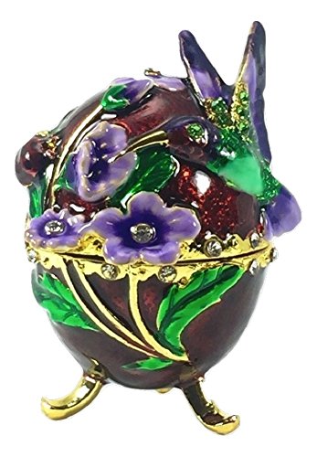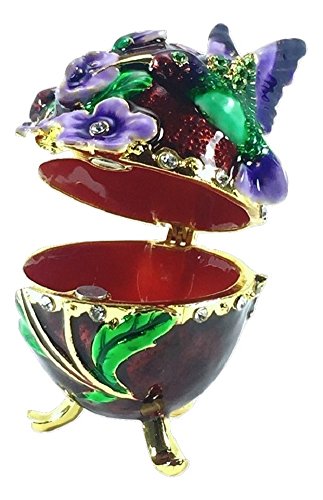 Welforth Bejeweled Red Egg Trinket Box with Hummingbird