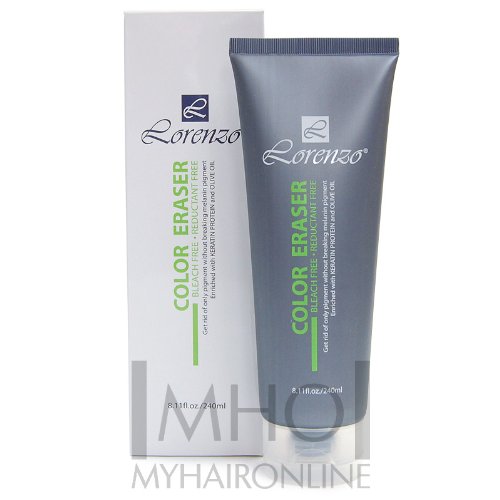 The hair will not be damaged by removing pigments only. The color eraser does not contain decolorizer or reducing agent. Nutrition of hair is supplied by keratin protein and olive oil while green tea extract and aloe ingredient protect the hair. 0