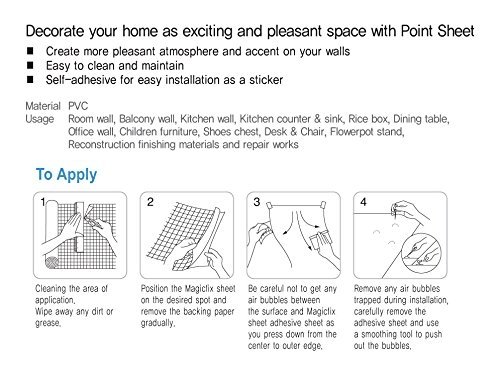 -. Feature : Made in South Korea / Size : 1.64 feet X 9.84 feet , Thickness 0.15mm , Material : PVC (Water proof & Easy to clean) / Creates more pleasant atmosphere and accent on your walls with point wall sheet / Peel & stick Self adhesive easy installation as a sticker , Simply cut to length or shape for a custom application. / High Quality DIY interior Film
