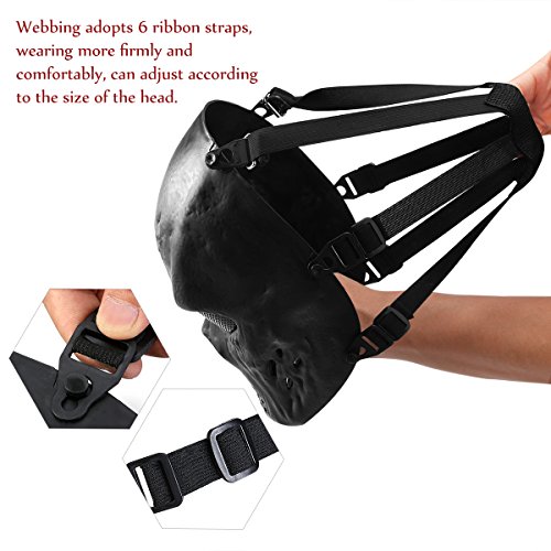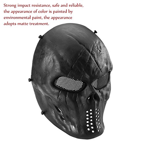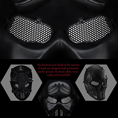 -. Feature : ECO-FRIENDLY MATERIAL. The mask part is made from light and high density fiber material, non-toxic, odorless that helps you breathe freely. / METAL MESH MADE EYE PROTECTION. The design of the eyes part is metal mesh made that no fog up in the game time, meanwhile protect your eyes well. / COMFORTABLE WEARING. Has rubber pad inside on forehead and check part, adjustable straps that allow the mask fit easily with most teens and adults. / WIDE USE RANGE. Great for hunting, CS game, Halloween party times or other outdoor activities. / NO RISK PURCHASING. One-year money-back guarantee and lifetime friendly customer service.
