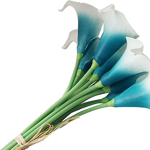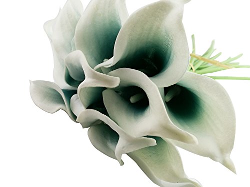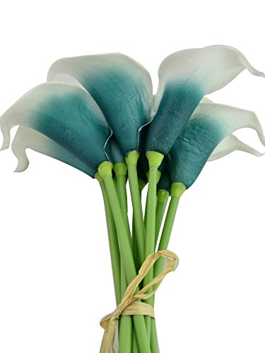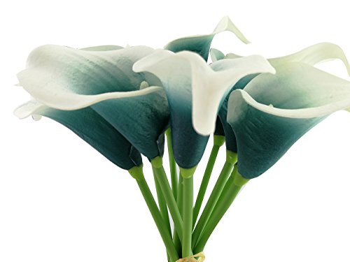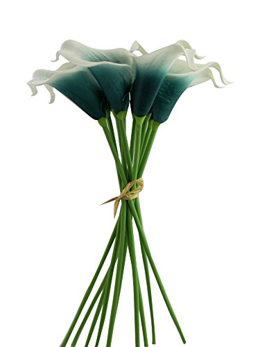 Beautiful Artificial Real Touch Flower Latex Calla Lily Bouquet For Home Wedding Party Restaurant Decoration-Bunch of 10(Peacock Green)