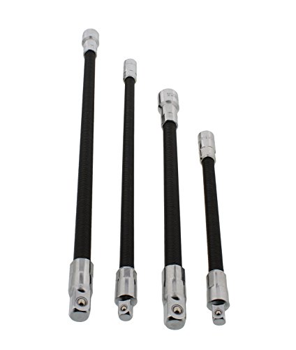 PRACTICAL FOR HARD-TO-REACH AREAS: Perfect for use in places with limited access, the ABN Flexible Socket Extension Cable Flex Bar Ratchet Light Impact Tools 4-Piece Set of 1/4” Inch Drive & 3/8” Inch Drive quickly loosen bolts and nuts at awkward angles and in difficult to reach locations for light-duty torque applications