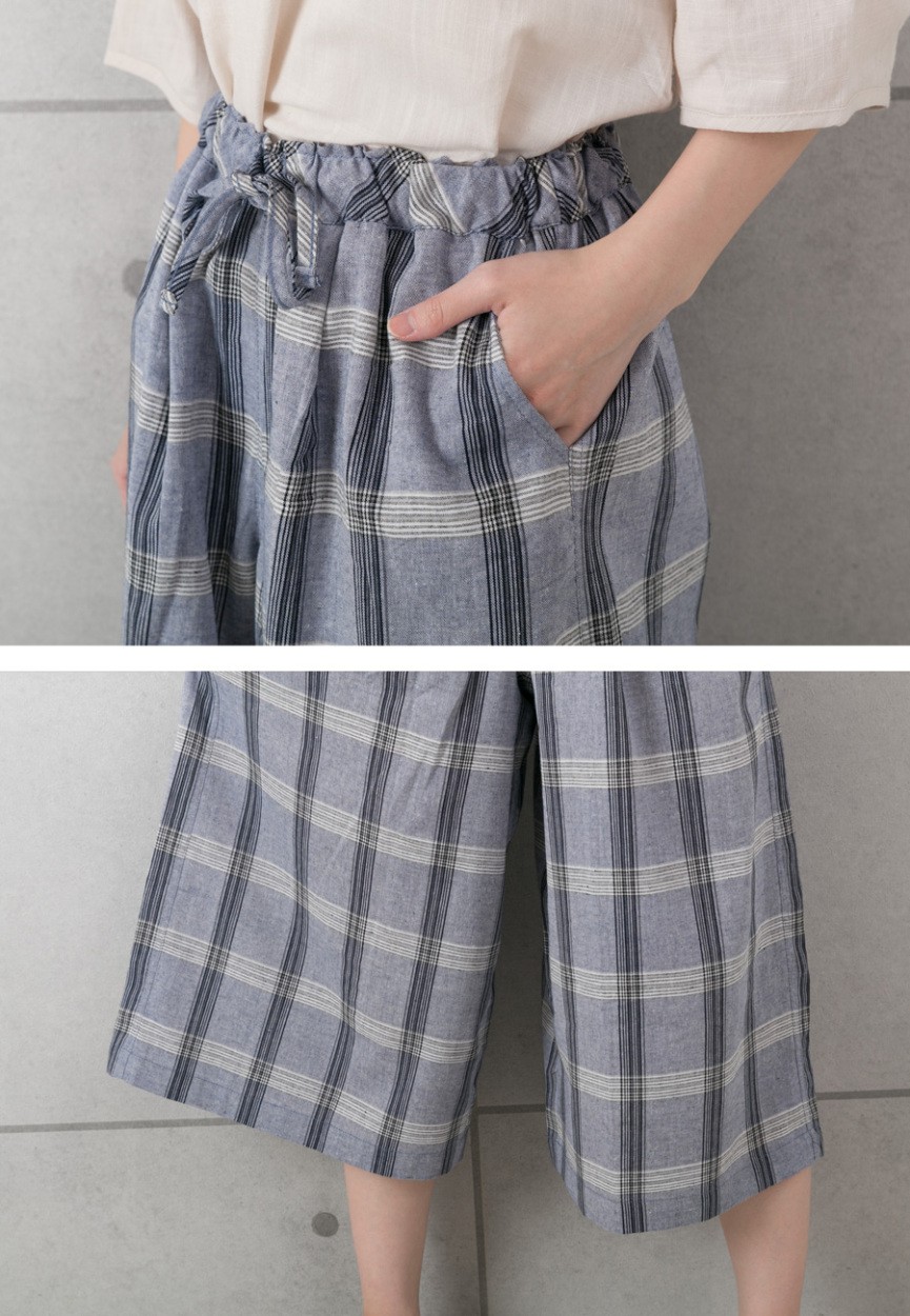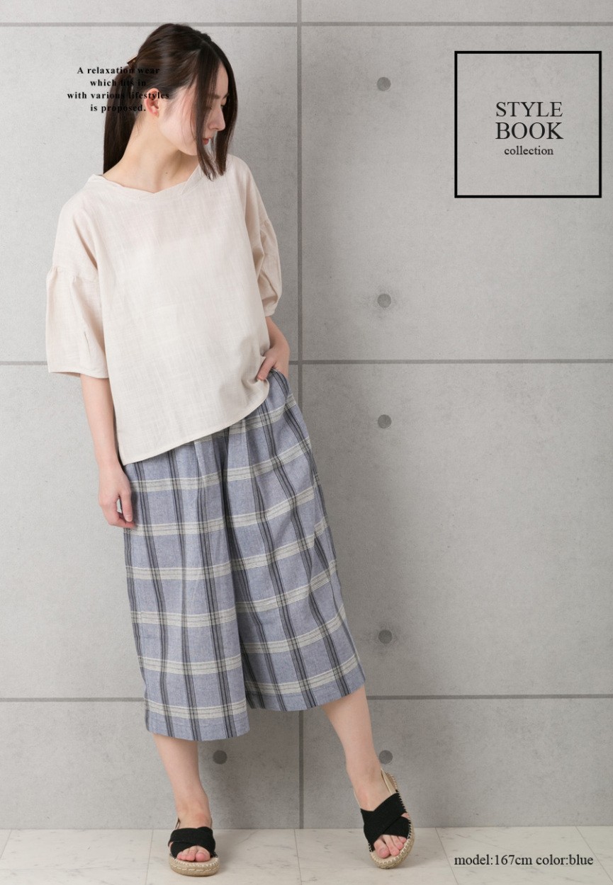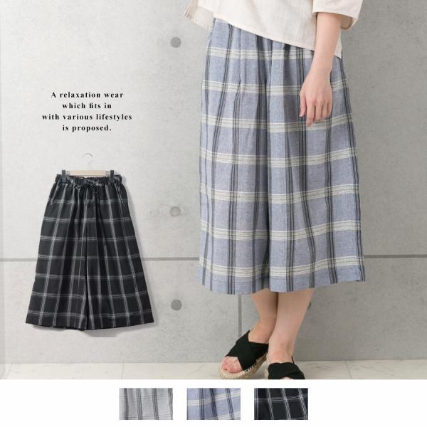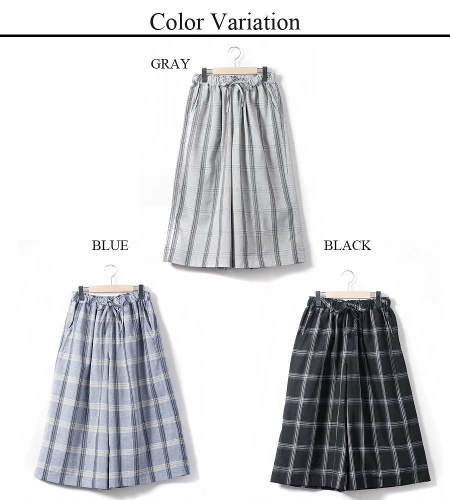 【レディース ワイドパンツ ガウチョパンツ パンツ ボトムス チェック かわいい オシャレ コットン myke】