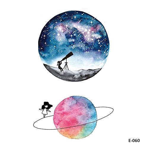 WYUEN 5 Sheets Watercolor Planet Children Body Art Tattoo Sticker For Men Fake Waterproof Temporary Tattoo 9.8X6cm FE-060