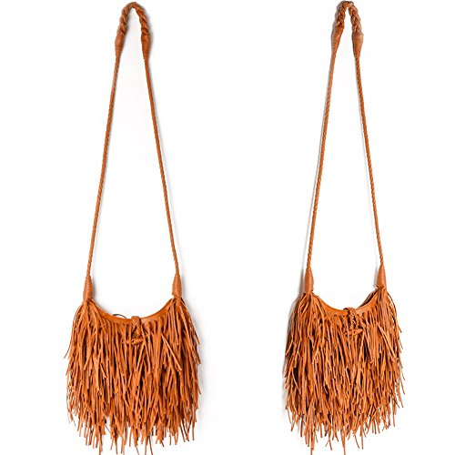 Minimalist, this classic vegan leather shoulder bag Feature full fringed on the front and back