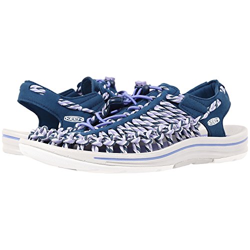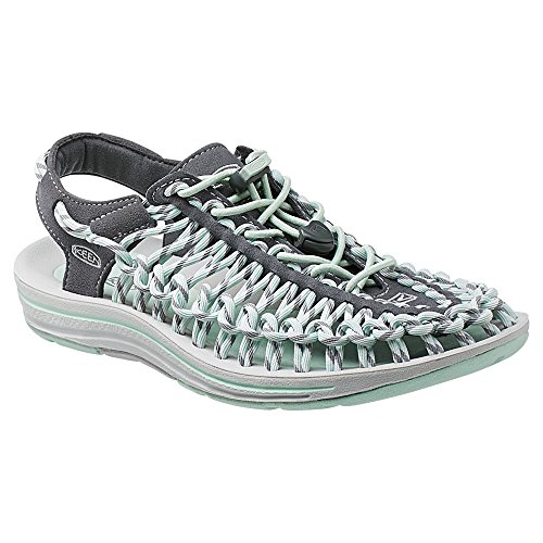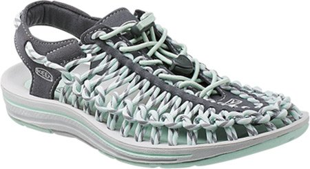 There's unique, and then there's uneek - the new sandal from KEEN. Using innovative two cord construction, KEEN uneek molds to your feet for the perfect fit. The two cords and a simple, free-moving cord junction design allow the upper to move and adapt to the shape of foot. This construction provides freedom of movement while providing security and structure. The lightweight pu midsole delivers durability and comfort while the high traction rubber outsole with razor siping ensures secure footing. Now that's uneek. Two cords and a sole.Feature