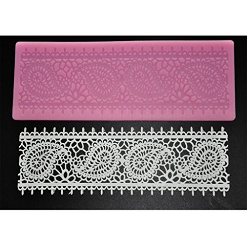FOUR-C Cake Supplies Lace Silicone Mat Lace Mold for Sugar Craft Color Pink