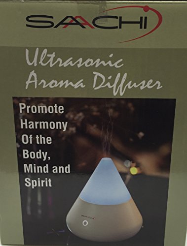 Using ultrasonic technology, saachi aroma diffuser works also as a humidifier to break up water and Essential oils or aroma blends into extremely fine micro-particles, diffusing aroma into the air as Mist without heat, which can Destroy the therapeutic benefits of Essential oils. This diffuser will Purify, sterilize and DEODORIZE the air, which can help control allergies, asthma, sinusitis and emphysema. Saachi ultrasonic diffuser also offers soft lighting with alternating Colored LED bulbs or choose to set the unit to stay on one color. Extremely quiet, efficient and safe, this diffuser can improve both physical and physiological well-being in any interior environment. Runs up to 8 hours and has Auto shut off when water level is low.".Feature