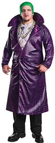 -. Binding : Apparel -. Brand : Rubie's -. Color : Multi -. Department : mens -. Feature : Deluxe costume jacket with attached shirt / Plus size designed to fit up to 50-inch chest and 42 to 46-inch waist / Officially licensed Suicide Squad Joker costume, buy with confidence direct from Amazon, a trademark of DC Comics / Wear with your own pants / Create your own Squad with costumes and accessories for all the movie characters -. IsAdultProduct : 0 -. Label : Rubies Costumes - Apparel -. Manufacturer : Rubies Costumes - Apparel -. Model : 17992 -. PackageQuantity : 1 -. ProductGroup : Apparel -. ProductTypeName : ADULT_COSTUME -. Publisher : Rubies Costumes - Apparel -. Studio : Rubies Costumes - Apparel -. Title : Rubie's Men's Suicide Squad Plus Size Deluxe Joker Costume