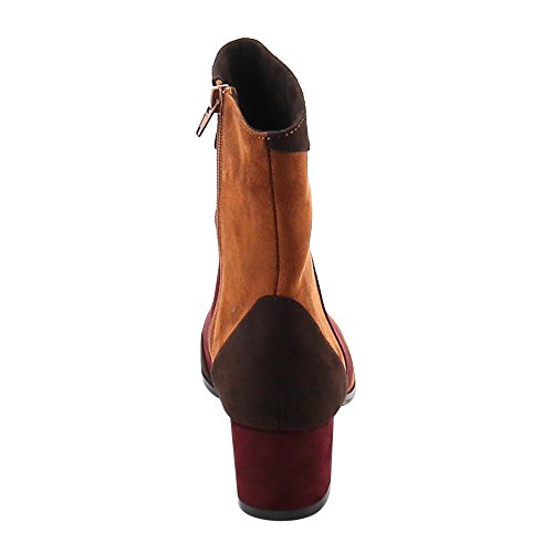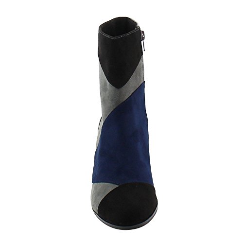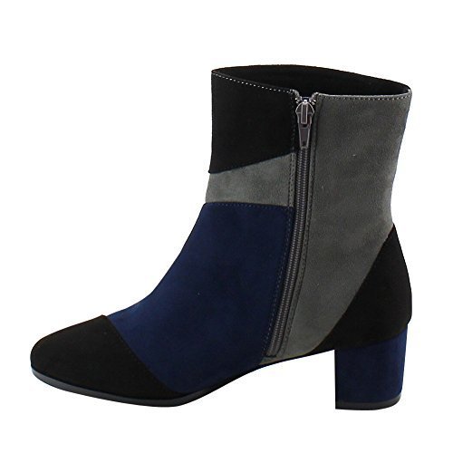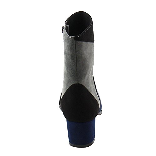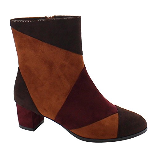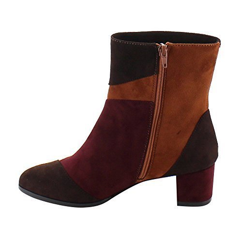 Product DescriptionChoose the effortless style of these patchwork ankle booties. Featuring faux suede upper, round toe silhouette, inside zipper, mid high block heel and lightly padded footbed.0